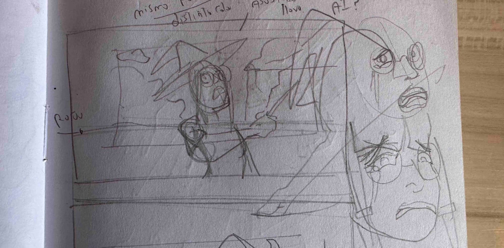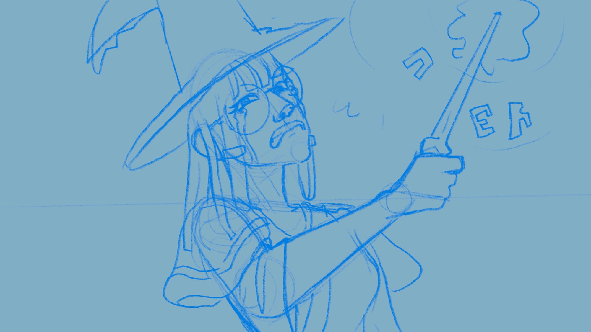 El primer paso fue hacer un boceto en papel con la composicion general y la expresión que quería darle al personaje.